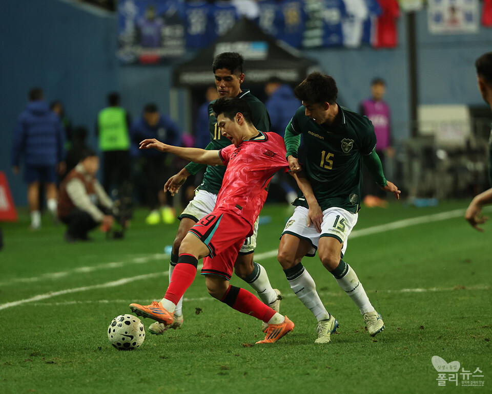 [폴리뉴스 문용준 기자] 14일 대전월드컵경기장에서 '하나은행 초청 남자축구국가대표팀 친선경기' 대한민국(피파랭킹 22위)과 볼리비아(76위)의 경기가 열렸다.