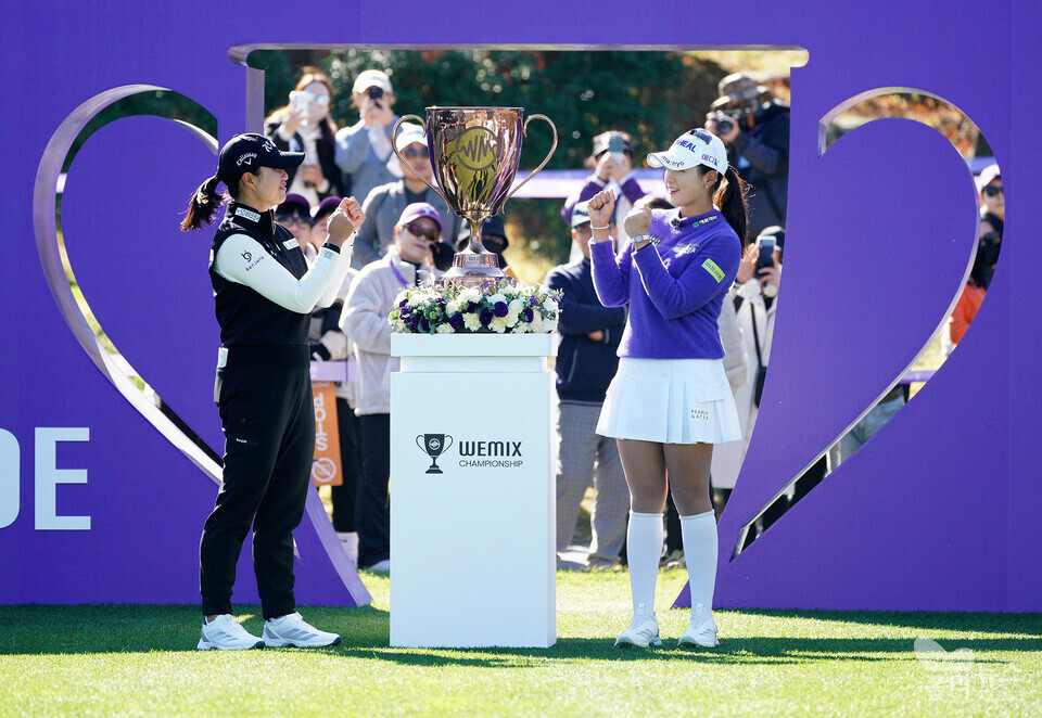 [폴리뉴스 문용준 기자] 15일 경주시 경주 마우나오션 컨트리클럽(파72,6,556야드)에서 '위믹스 챔피언십 2025'(총상금 10억 원,우승 상금 3억 원) DAY1 싱글 매치 플레이 박현경(메디힐)과 마다솜(삼천리)의 경기가 열렸다.