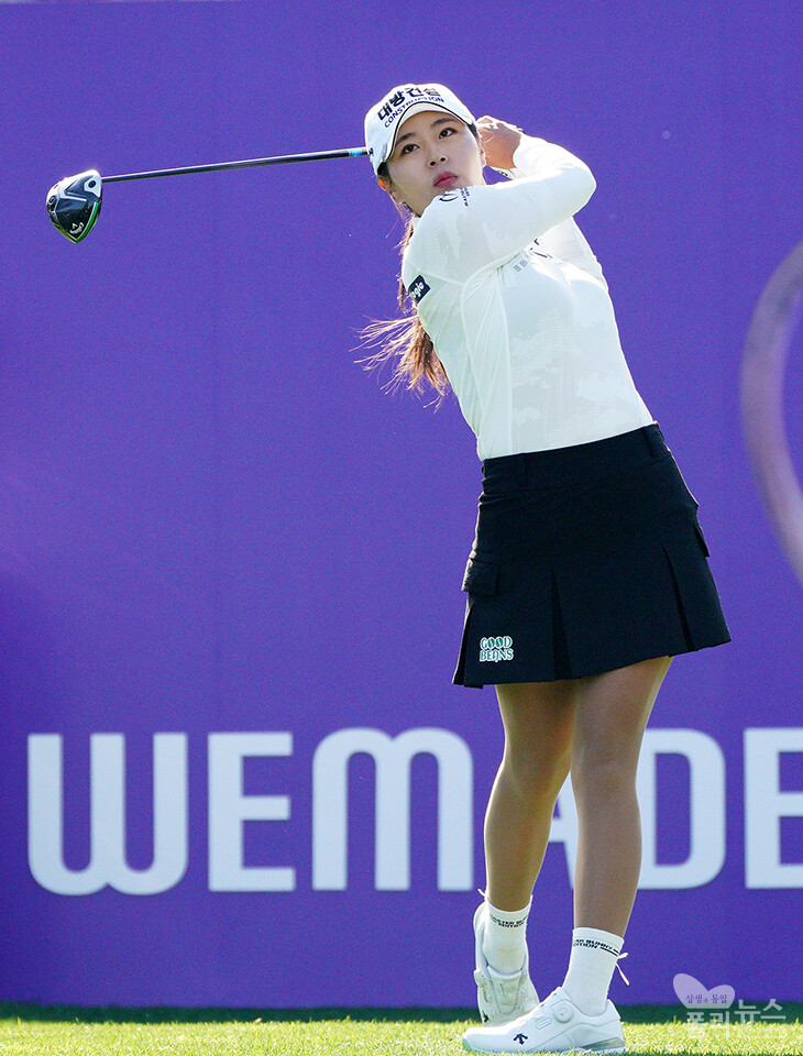 성유진(25.대방건설)이 1번 홀에서 힘차게 티샷을 날리고 있다.