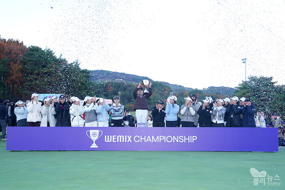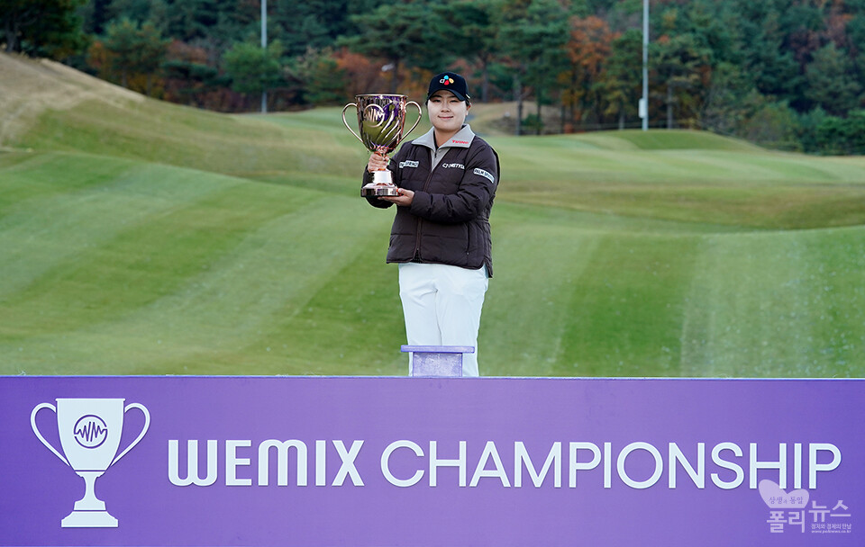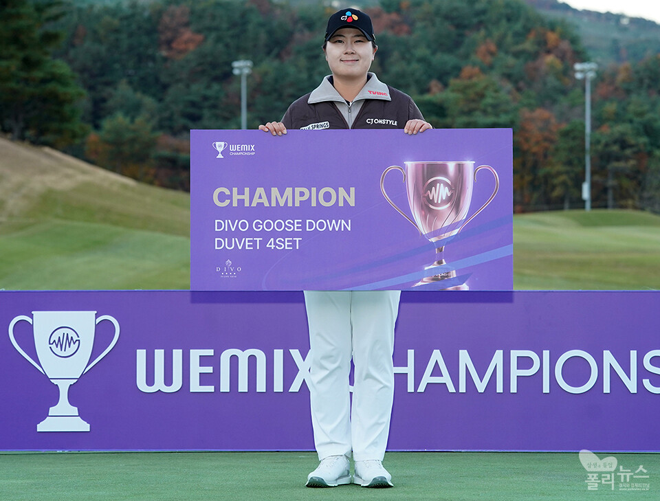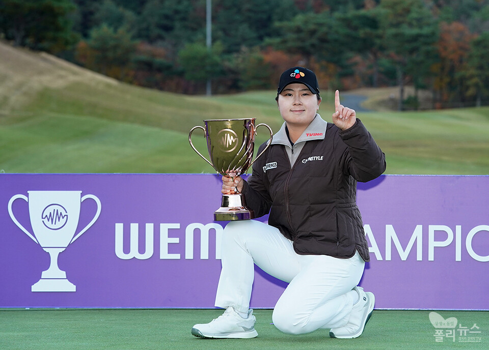 [폴리뉴스 문용준 기자] 16일 경주시 마우나오션 컨트리클럽(파 72·6,556야드)에서 열린 '위믹스 챔피언십 2025'(총상금 10억 원, 우승 상금 3억 원) 2라운드 최종 경기에서 홍정민23.CJ)이 최종 합계 4언더파 67타를 기록하며 우승을 차지했다.