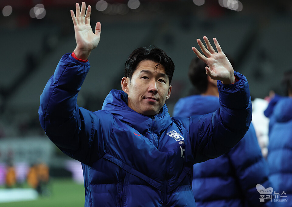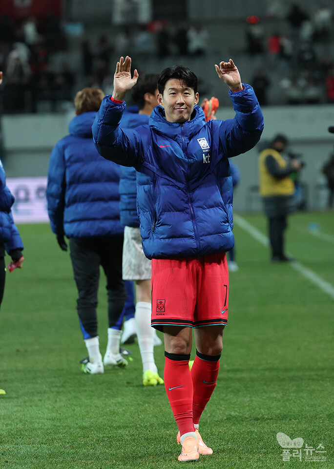 한국의 캡틴 손흥민(LAFC)이 경기를 마치고 마지막까지 팬서비스를 하고 있다.